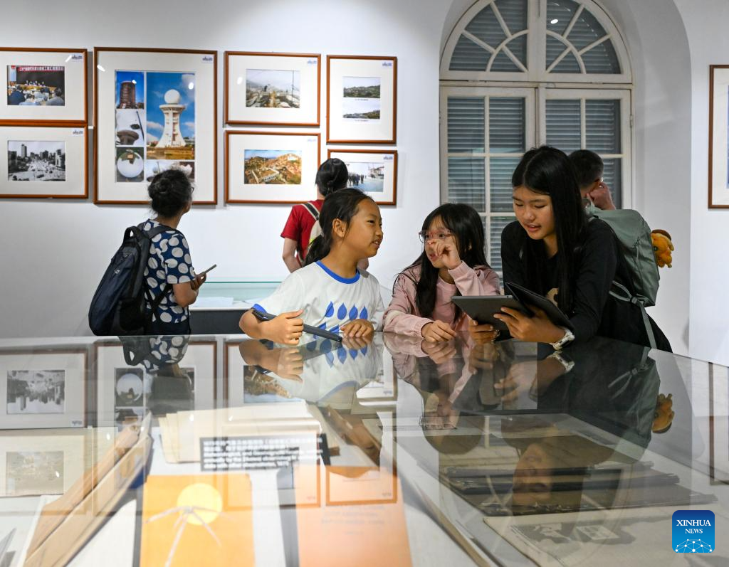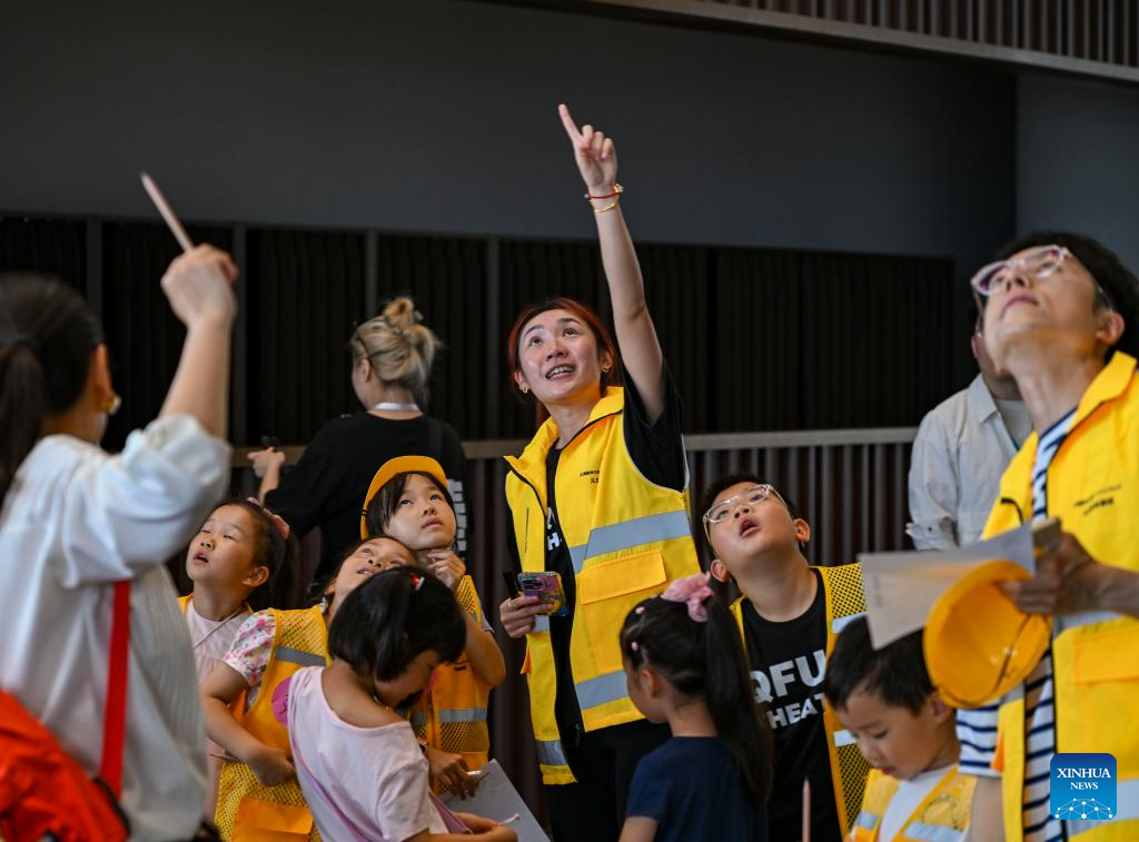 Students visit the Shanghai Meteorological Museum during a study tour in east China's Shanghai, May 17, 2025. In recent years, Shanghai has been promoting the construction of key public cultural facilities and cultural landmarks with Shanghai characteristics.