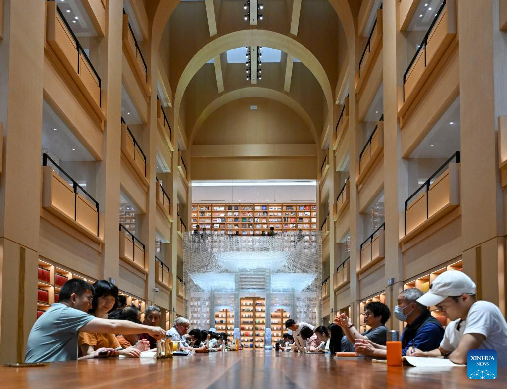 These public cultural spaces in Shanghai not only meet the daily cultural needs of the citizens, but also attract tourists to experience local culture. They become showcases to display the charm of Shanghai culture. (Photo by Chen Haoming/Xinhua)