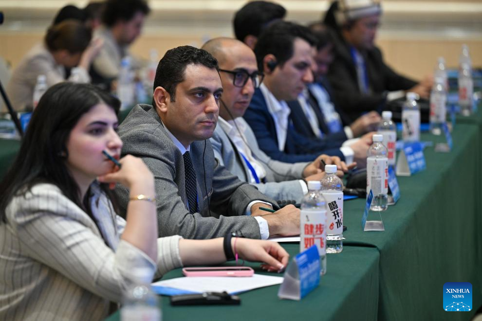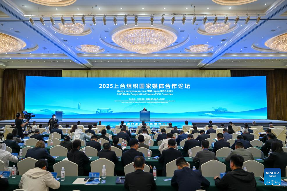 Guests attend the 2025 Media Cooperation Forum of SCO Countries held in Urumqi, northwest China's Xinjiang Uygur Autonomous Region, May 23, 2025. With the theme of "Building a Better Home Together for a Prosperous Future," the forum kicked off in Urumqi of Xinjiang on Friday. Over 300 representatives from mainstream media outlets, government departments, academic institutions, and enterprises from 26 SCO member states, observer states, and dialogue partners attended the forum. (Xinhua/Ding Lei)