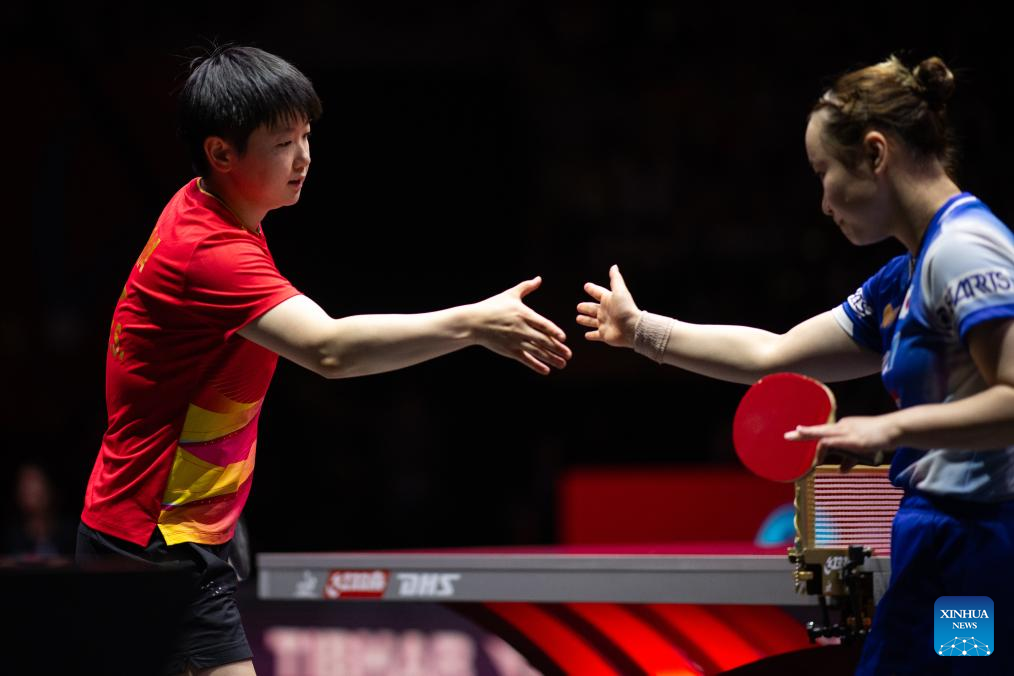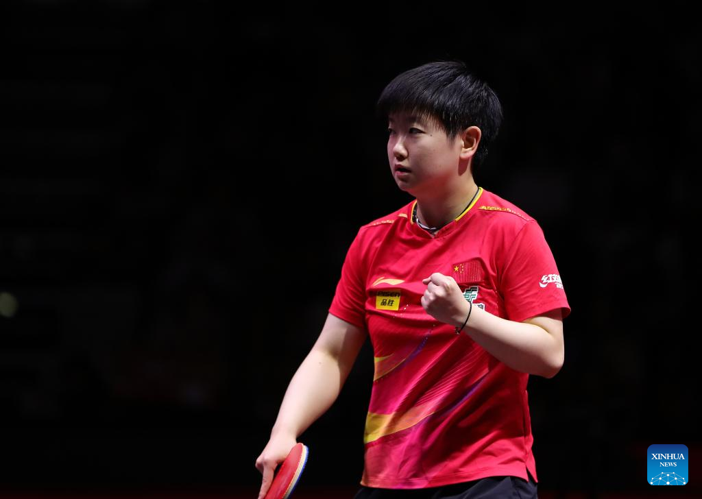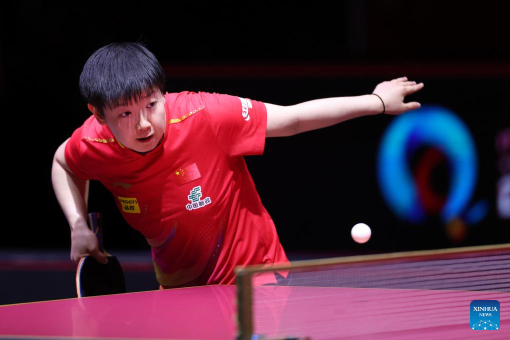 DOHA, May 24 (Xinhua) -- Sun Yingsha disposed of Japan's Mima Ito in straight sets in the women's singles semifinals on Saturday to confirm a clean sweep of the event's medals for China at the World Table Tennis Championships.