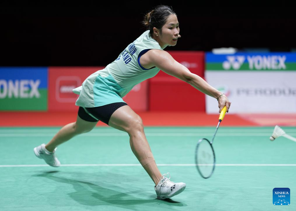 Ratchanok Intanon of Thailand hits a return during the women's singles semifinal match between Wang Zhiyi of China and Ratchanok Intanon of Thailand at Malaysia Masters 2025 in Kuala Lumpur, Malaysia, May 24, 2025. (Xinhua/Jia Haocheng)
