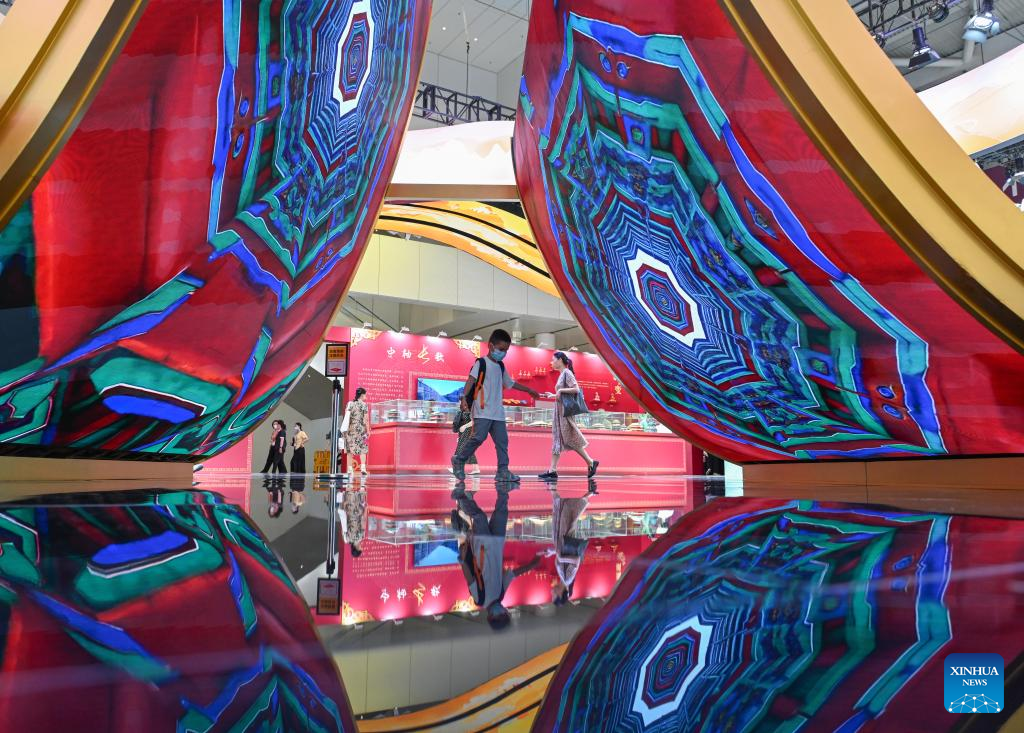 Children walk past a screen at the exhibition area of Beijing during the 21st China (Shenzhen) International Cultural Industries Fair in Shenzhen, south China's Guangdong Province, May 24, 2025. Opened here on Thursday, the five-day event is being held across eight exhibition halls -- three comprehensive spaces and five specialized areas. Activities related to traditional culture and cultural heritages attracted many young visitors. (Xinhua/Xiao Ennan)