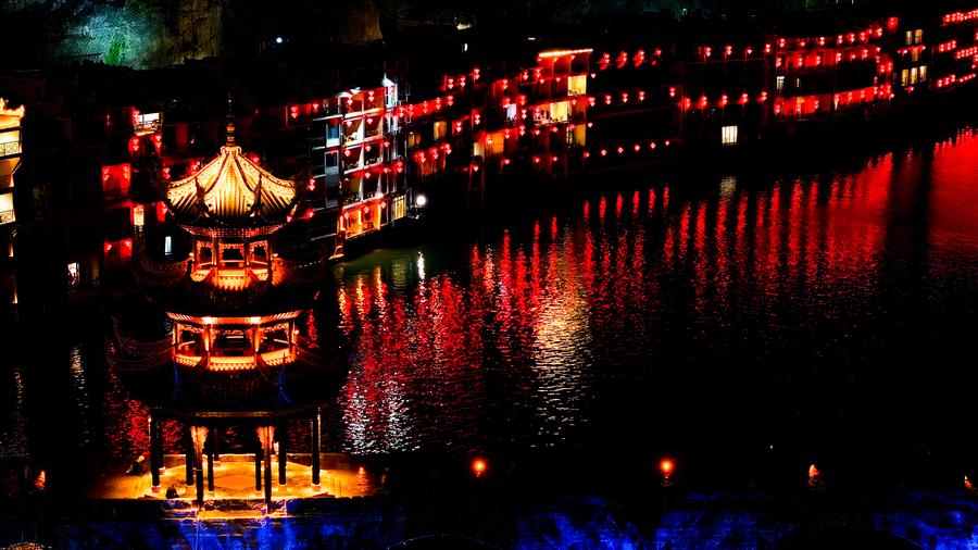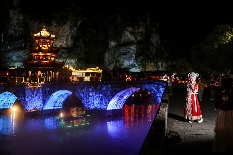 ZHENYUAN, May 26 (Xinhua) -- With a history of over 2,000 years, the ancient town of Zhenyuan sits at riverside in Guizhou's mountains. The Wuyang River curves through its heart, forming a harmonious picture with traditional wooden houses built right over the water. Stone bridges connect both banks, where you can see boats gliding past reflections of glowing lanterns at night.