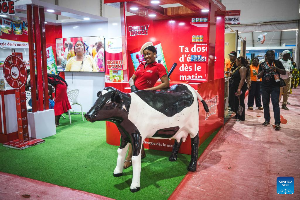 This photo taken on May 26, 2025 shows a dairy exhibitor during the 7th Abidjan International Exhibition of Agriculture and Animal Resources in Abidjan, Cote d'Ivoire. The exhibition, a major agricultural fair in West Africa, opened on May 23, 2025, with China participating as the guest of honor. In a 10-day term, the fair is expected to draw more than 500,000 visitors and nearly 1,000 exhibitors showcasing products and services from across Africa, Asia and Europe. (Xinhua/Wang Guansen)