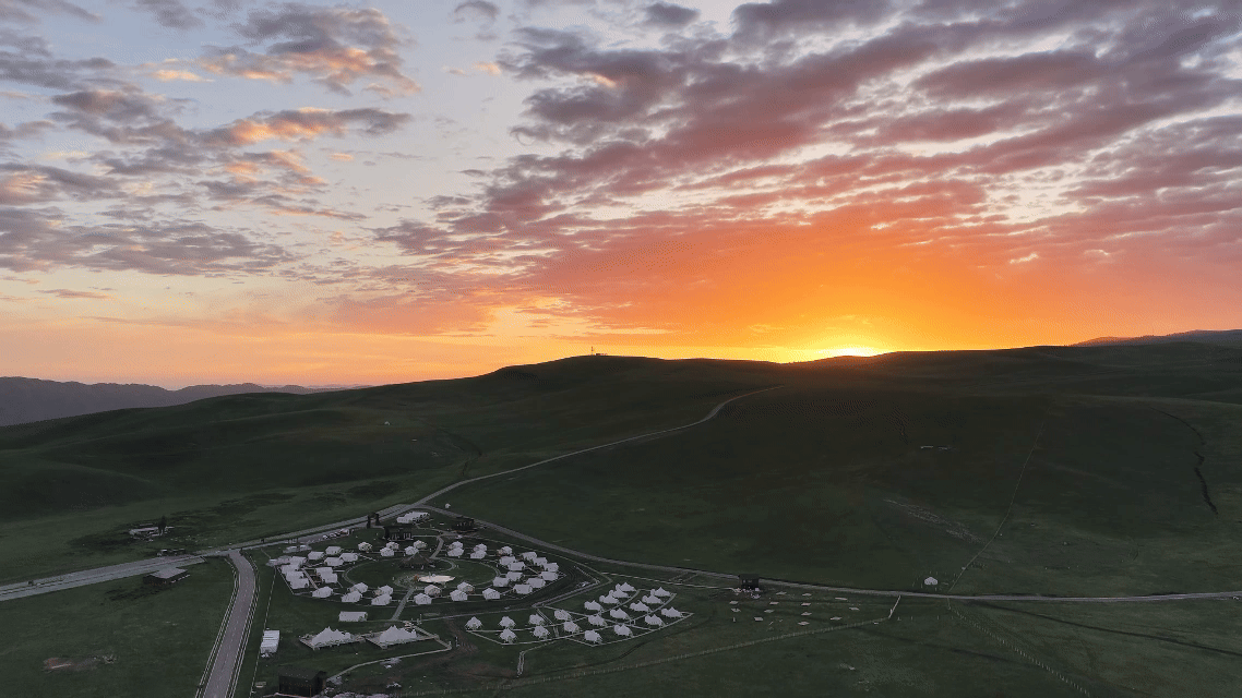 ILI, May 27 (Xinhua) -- After an early summer rain, the Kalajun Grassland in Ili River Valley of northwest China's Xinjiang Uygur Autonomous Region emerges with mist-shrouded forests and rolling hills.
