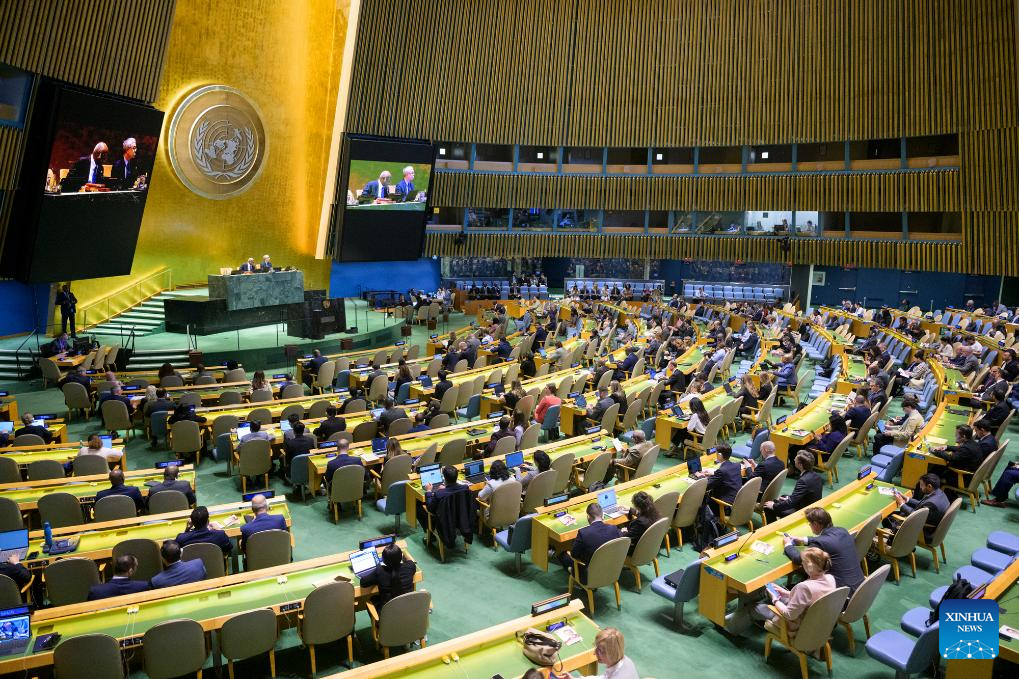 The UN General Assembly holds a meeting to elect a judge of the International Court of Justice (ICJ) at the UN headquarters in New York, on May 27, 2025. Jordan's UN ambassador Mahmoud Hmoud was elected a judge of the International Court of Justice (ICJ) on Tuesday to replace Nawaf Salam, who resigned in January following his appointment as Lebanese prime minister. (Manuel Elias/UN Photo/Handout via Xinhua)