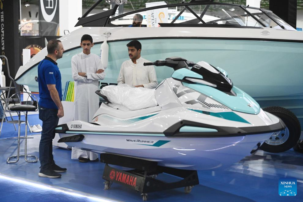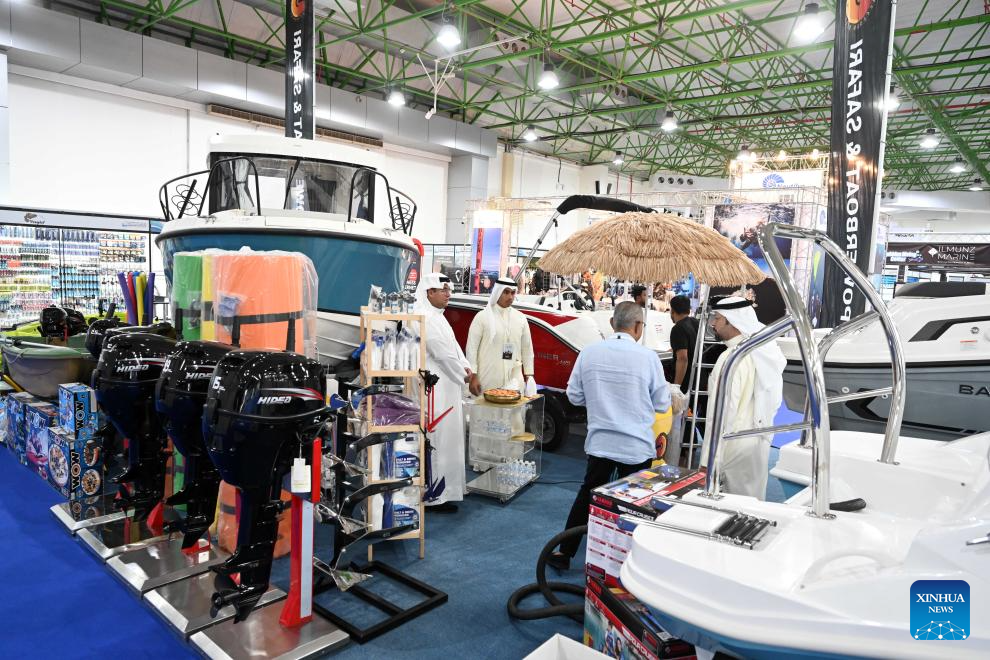 People visit the Kuwait International 2025 Expo for Water Activities, Fishing, Hunting and Outdoor Adventures in Hawalli Governorate, Kuwait, May 27, 2025. The expo kicked off here on Tuesday and will run until May 31. (Photo by Asad/Xinhua)