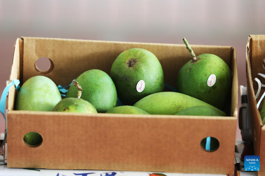 This photo taken on May 28, 2025 shows the first consignment of Bangladeshi fresh mangoes to be exported to China, in Dhaka, Bangladesh. (Photo by Habibur Rahman/Xinhua)