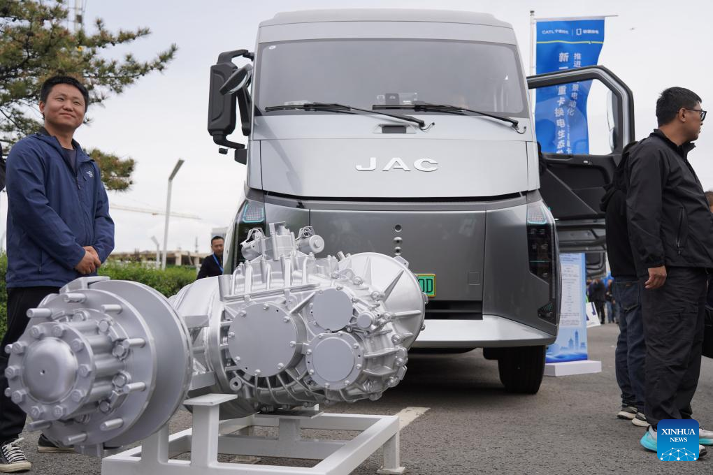 A green-energy heavy-duty truck is exhibited in Datong, north China's Shanxi Province, May 18, 2025. (Xinhua/Chen Zhihao)