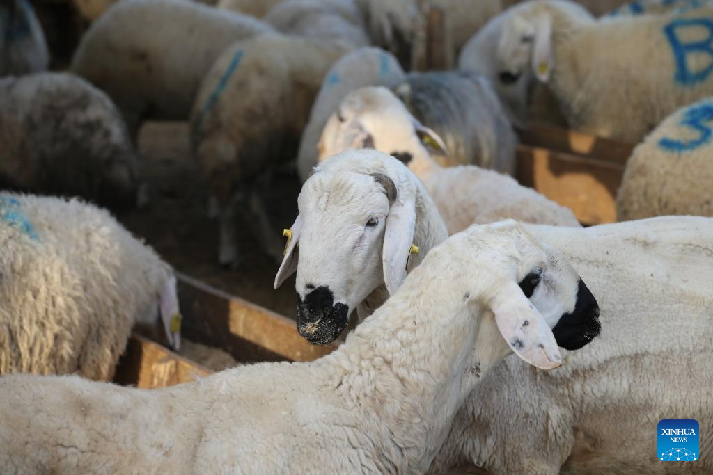 Sheep are seen at a livestock market in Ankara, Türkiye, on May 28, 2025. (Mustafa Kaya/Handout via Xinhua)