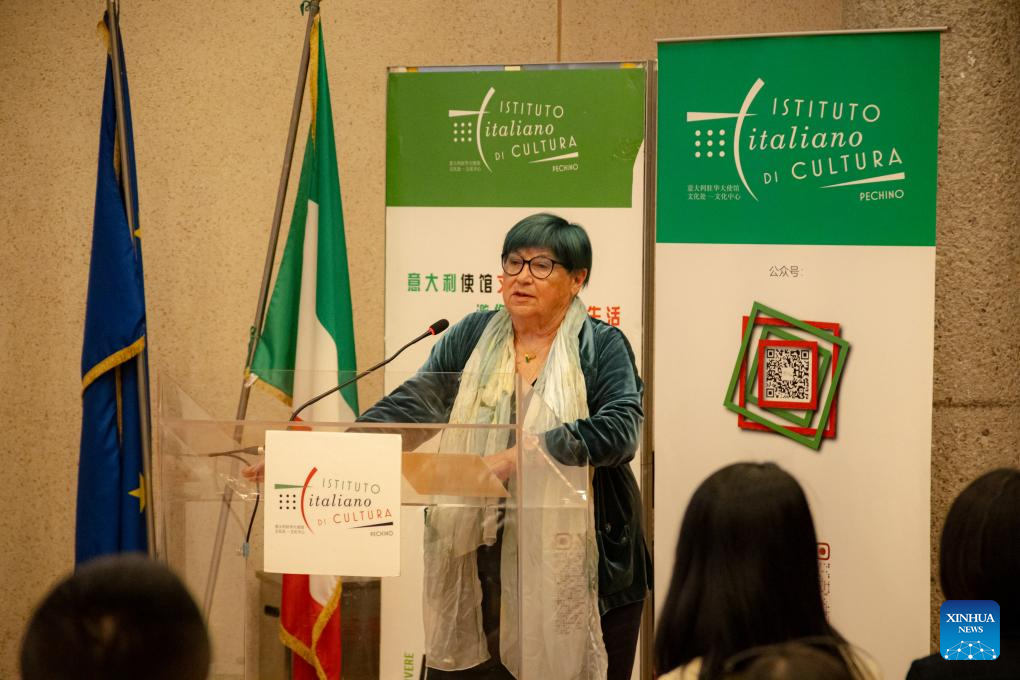 Italian sinologist Silvia Calamandrei speaks during the launch ceremony for the new book "The bridge of China-Italy friendship: China Today as written by the 1955 Italian cultural delegation" at the Italian Cultural Institute in Beijing, capital of China, May 8, 2025. (Xinhua)