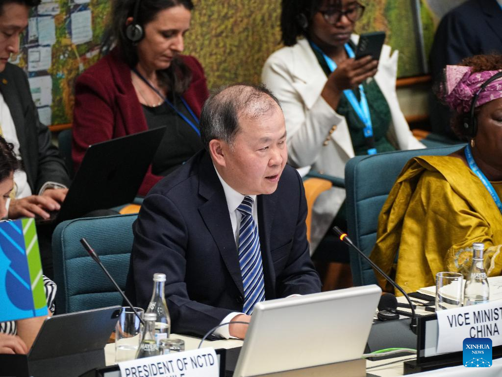 Dong Jianguo, vice minister of housing and urban-rural development of China, delivers a speech during the resumed second session of the United Nations (UN) Habitat Assembly held in Nairobi, the capital of Kenya, on May 29, 2025. (Xinhua/Li Yahui)