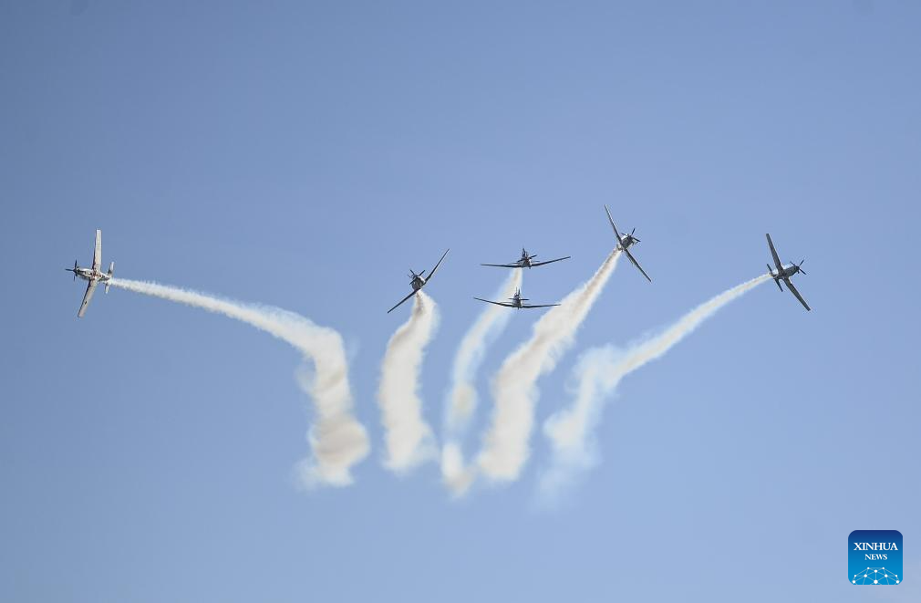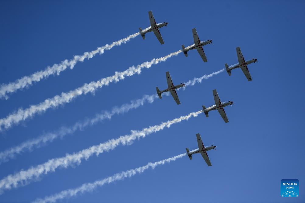 Croatian Air Force aerobatic display team Wings of Storm perform during a military exercise of the Croatian Army to celebrate the Statehood Day in Zagreb, Croatia, on May 30, 2025. (Igor Soban/PIXSELL via Xinhua)