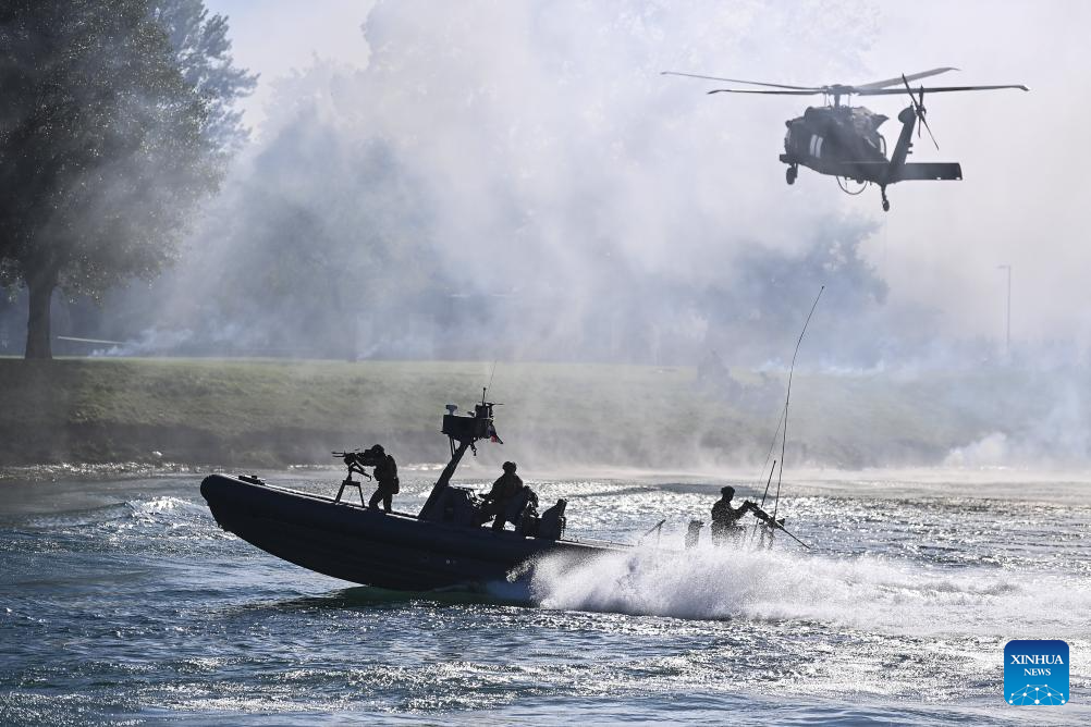 Croatian special forces perform during a military exercise of the Croatian Army to celebrate the Statehood Day in Zagreb, Croatia, on May 30, 2025. (Igor Soban/PIXSELL via Xinhua)