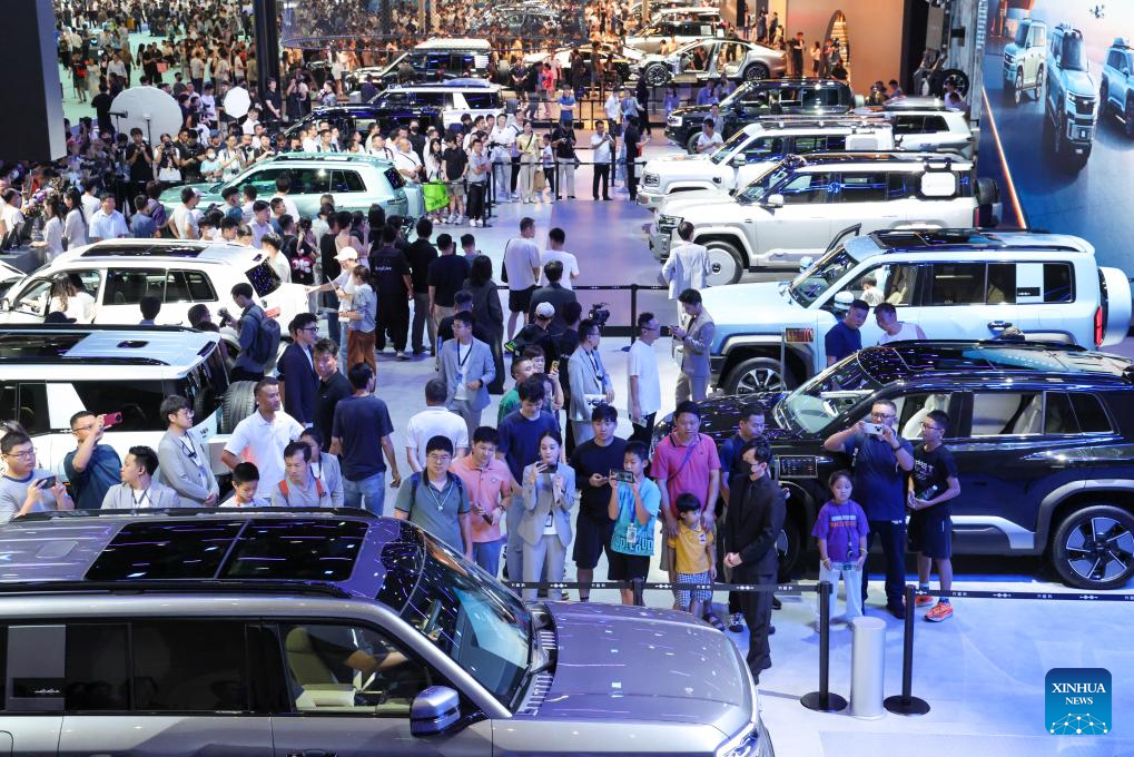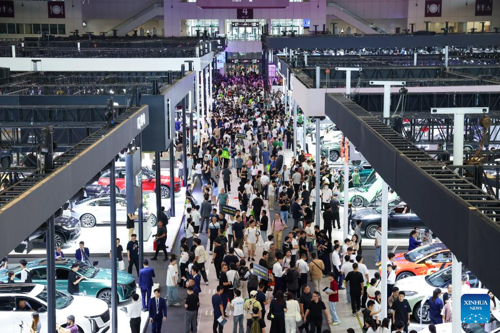 Visitors attend the 2025 Guangdong-Hong Kong-Macao Greater Bay Area International Auto Show in Shenzhen, south China's Guangdong Province, May 31, 2025. (Xinhua/Liang Xu)