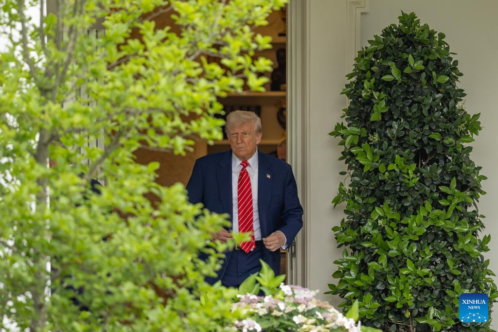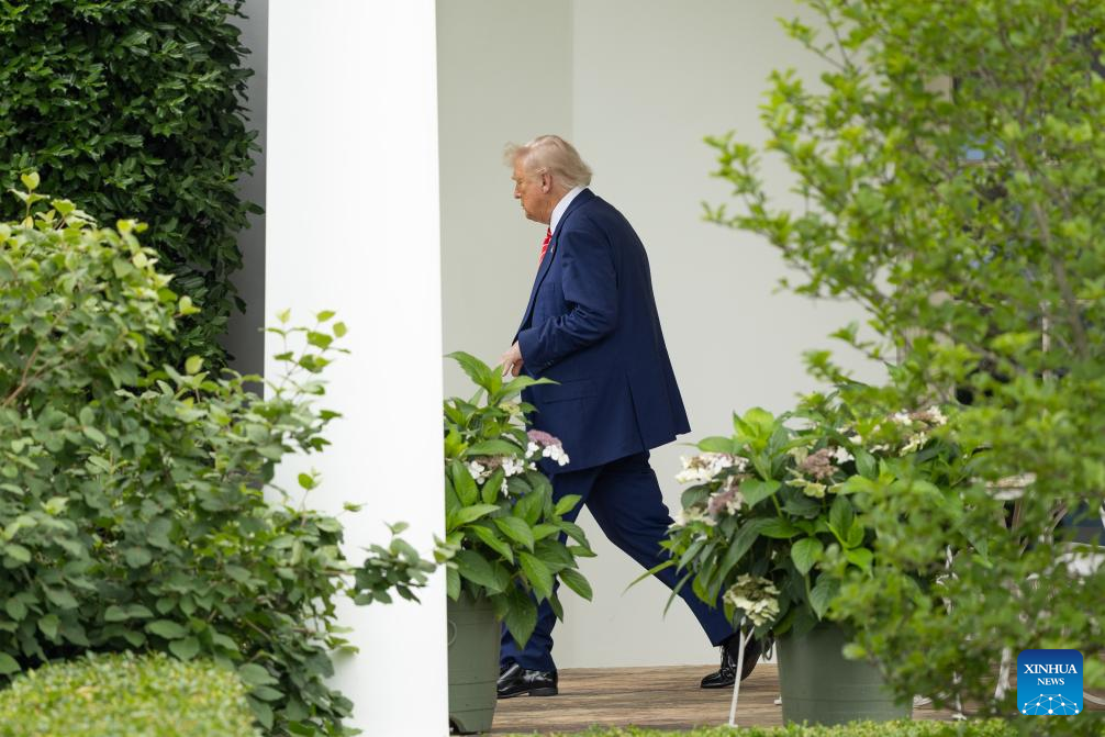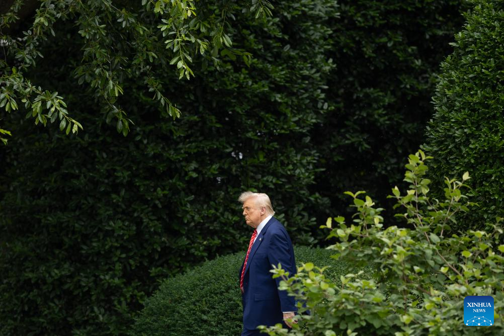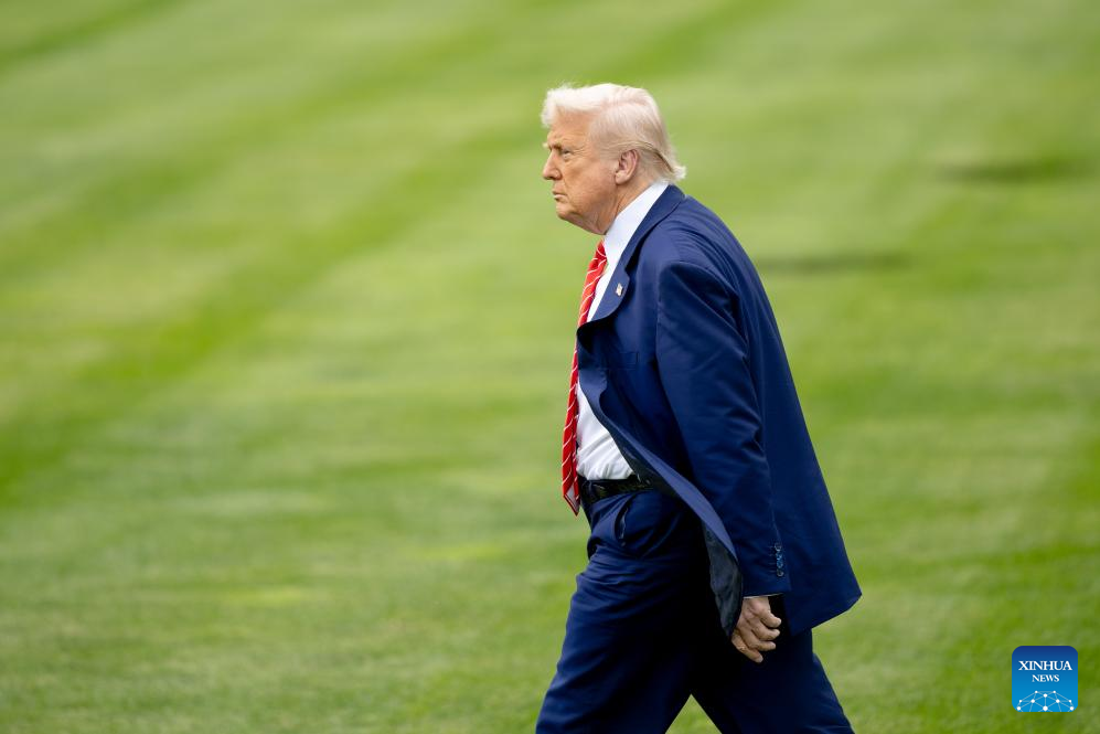 U.S. President Donald Trump walks to board Marine One at the White House in Washington, D.C., the United States, on May 30, 2025. U.S. Supreme Court on Friday lifted a federal district court order that kept humanitarian parole protections in place for more than 500,000 migrants from four countries of Cuba, Haiti, Nicaragua and Venezuela. The court has also allowed the Trump administration to revoke temporary legal status for about 350,000 Venezuelan migrants in another case. (Xinhua/Hu Yousong)