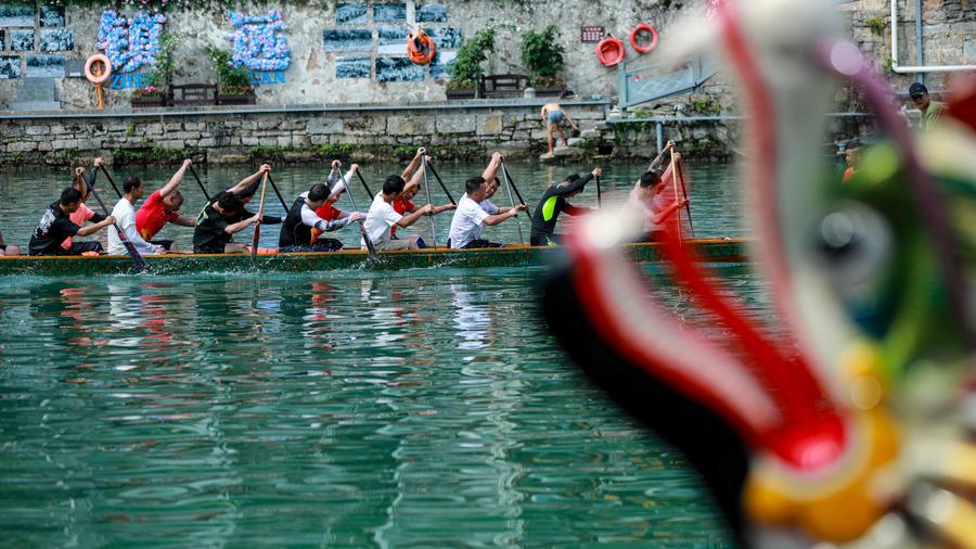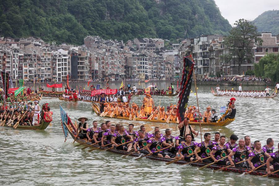 ZHENYUAN, May 31 (Xinhua) -- Zhenyuan boasts a 22-century-long tradition of dragon boat races, and the county is also well noted for the large sizes and intricate decorations of its dragon boats.