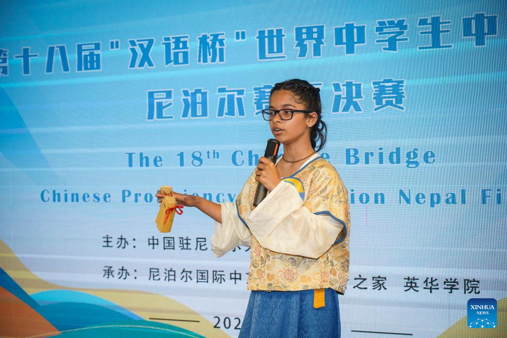 KATHMANDU, May 30 (Xinhua) -- The final rounds of "Chinese Bridge" Chinese proficiency competitions for primary- and secondary-school students in Nepal were held on Friday in Lalitpur, a city in the Kathmandu Valley.
