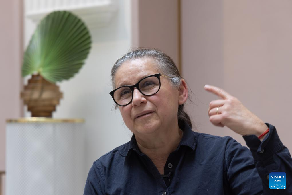 Hungarian filmmaker and screenwriter Ildiko Enyedi speaks during an interview with Xinhua on the sidelines of the "Imazsia Chinese Film Week 2025" forum in Budapest, Hungary on May 30, 2025.(Photo by Attila Volgyi/Xinhua)