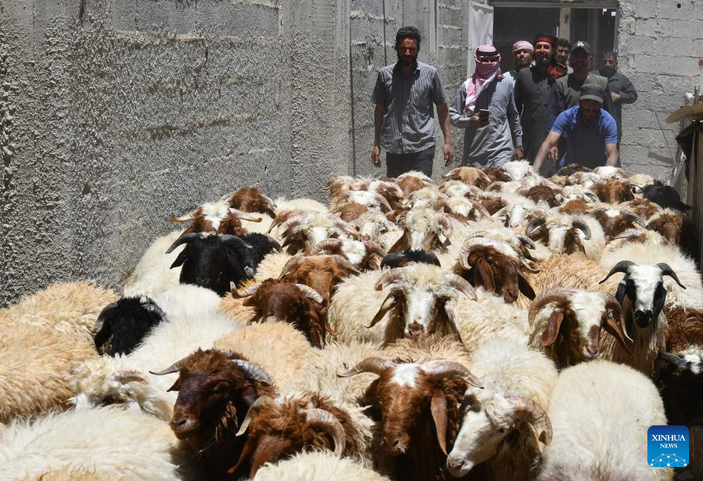 People visit a livestock market in preparation for the upcoming Eid al-Adha holiday in Damascus, Syria, on May 30, 2025. (Photo by Ammar Safarjalani/Xinhua)
