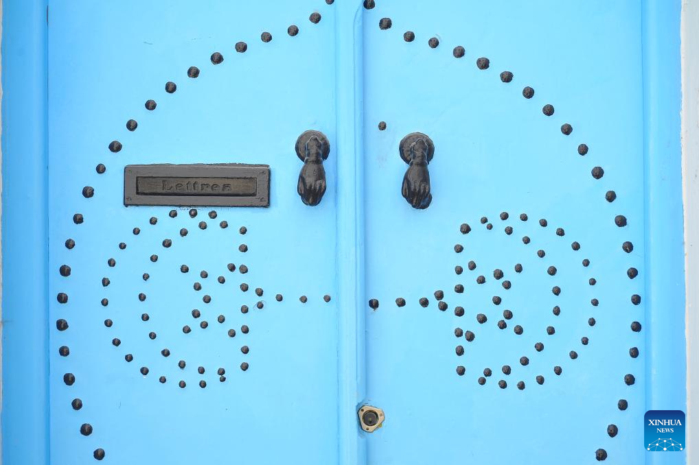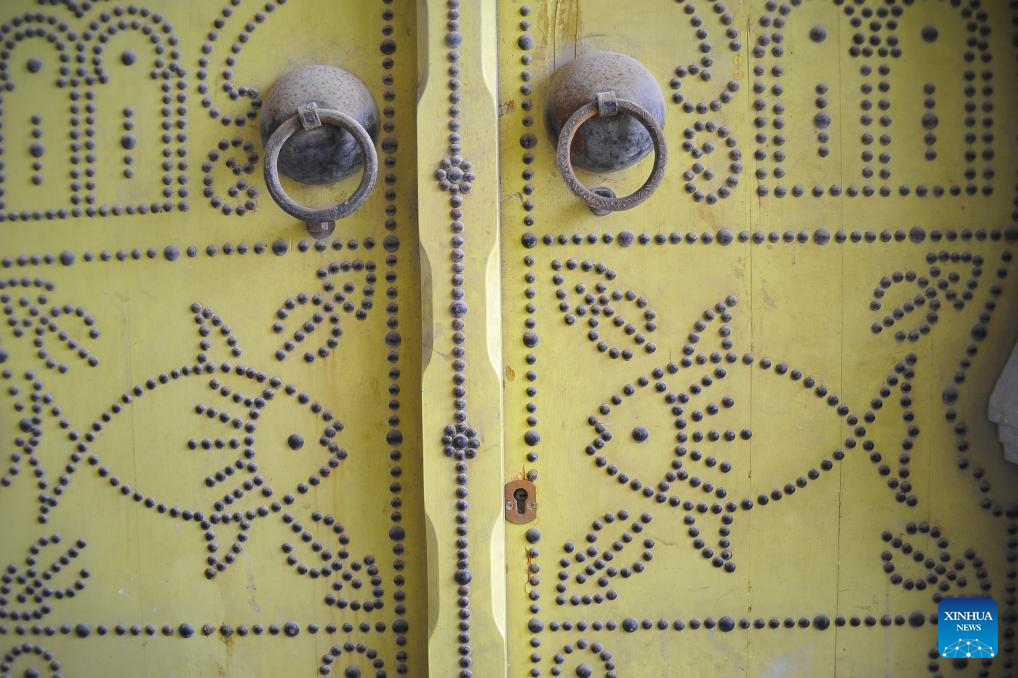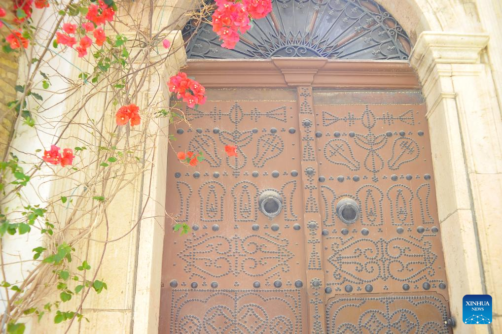 This photo shows a part of a residential door in the Medina of Tunis, Tunisia, May 31, 2025. The Medina of Tunis was listed the World Heritage Site by the United Nations Educational, Scientific and Cultural Organization (UNESCO) in 1979. (Photo by Adel Ezzine/Xinhua)