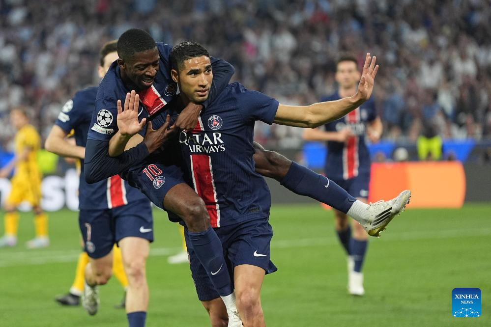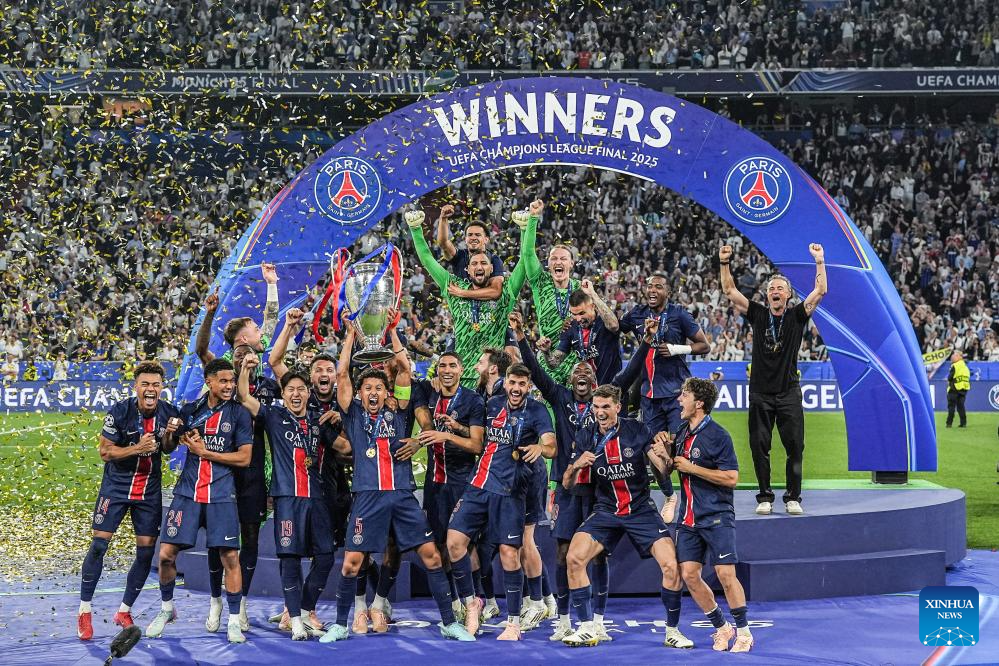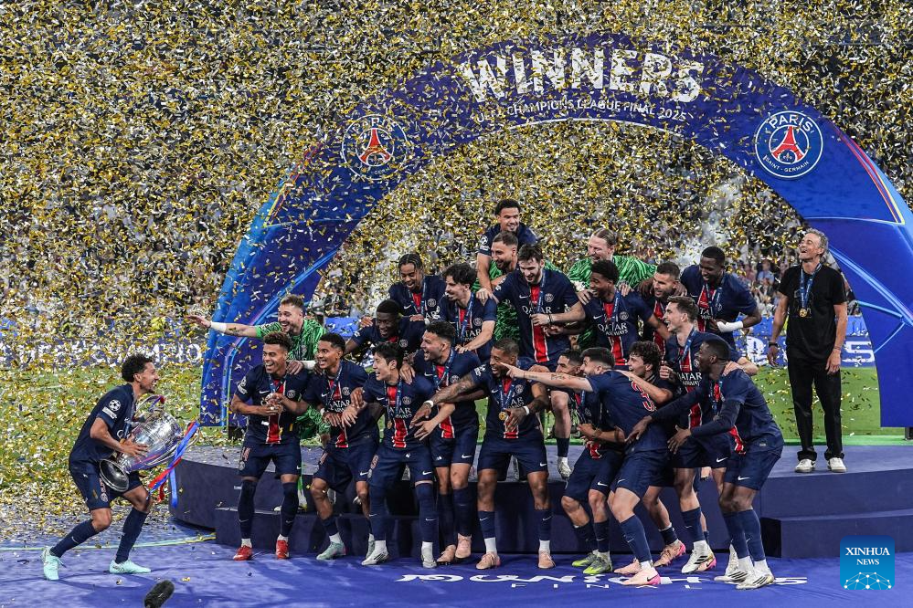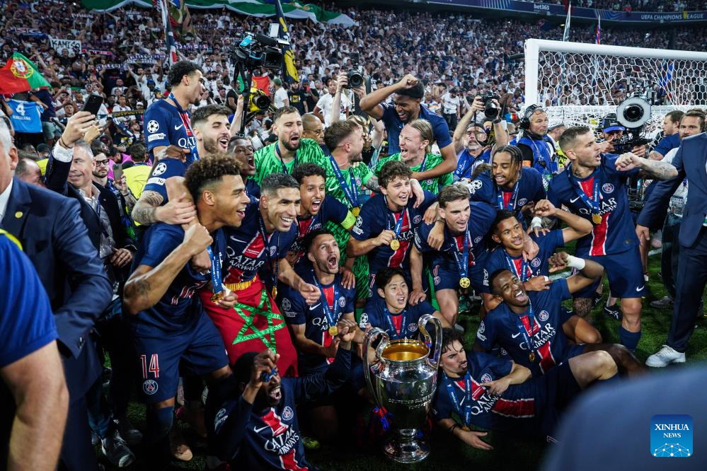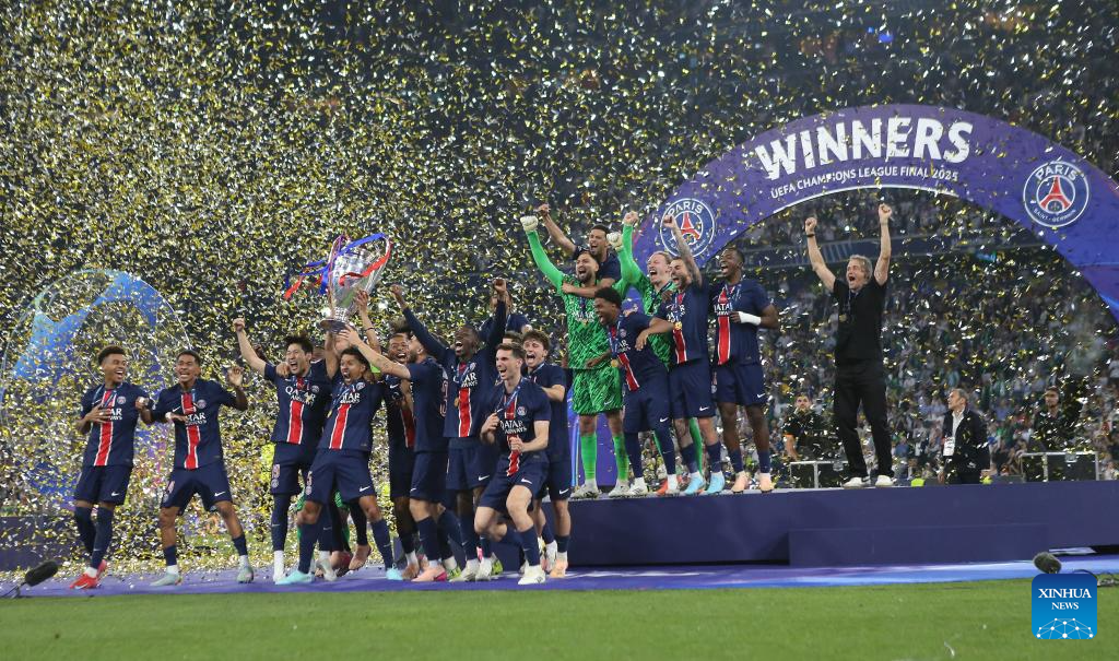 BERLIN, May 31 (Xinhua) -- Paris Saint-Germain ended its long quest for European glory with a commanding 5-0 triumph over Inter Milan in Munich on Saturday, capturing its first-ever Champions League title in record-breaking fashion.