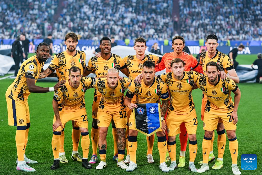 Players of Inter Milan pose for group photos before the UEFA Champions League final match between Paris Saint-Germain and Inter Milan in Munich, Germany, May 31, 2025. (Xinhua/Peng Ziyang)