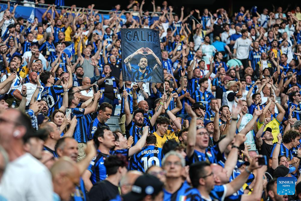 Fans of Inter Milan cheer for the team before the UEFA Champions League final match between Paris Saint-Germain and Inter Milan in Munich, Germany, May 31, 2025. (Xinhua/Peng Ziyang)