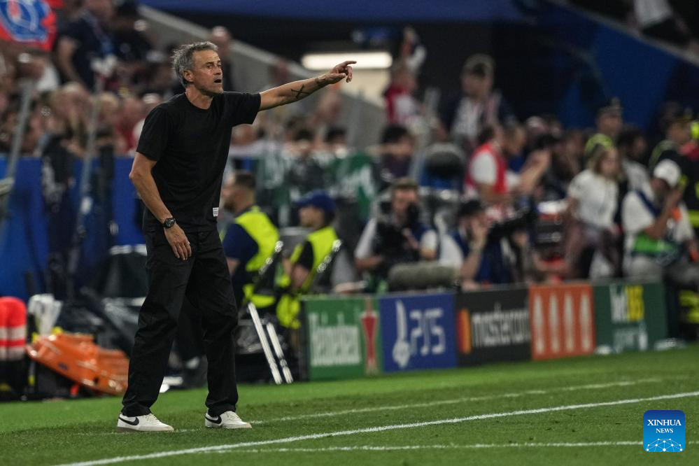 Head coach Luis Enrique of Paris Saint-Germain instructs during the UEFA Champions League final match between Paris Saint-Germain and Inter Milan in Munich, Germany, May 31, 2025. (Xinhua/Peng Ziyang)