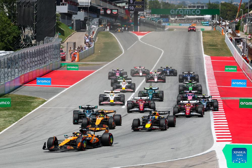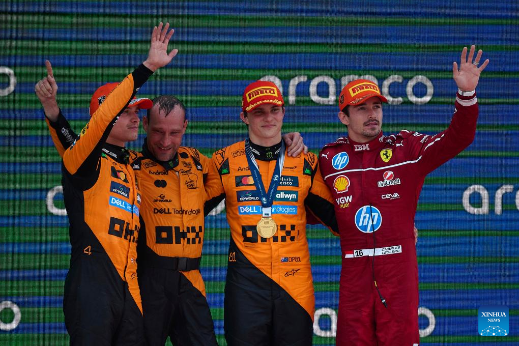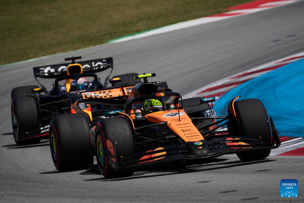 BEIJING, June 1 (Xinhua) -- Oscar Piastri claimed his fifth win of the 2025 Formula One season on Sunday, surviving a late safety car scare to lead a McLaren 1-2 at the Spanish Grand Prix, while Red Bull's Max Verstappen saw his race unravel after a late collision with Mercedes' George Russell earned him a 10-second penalty and dropped him to tenth.