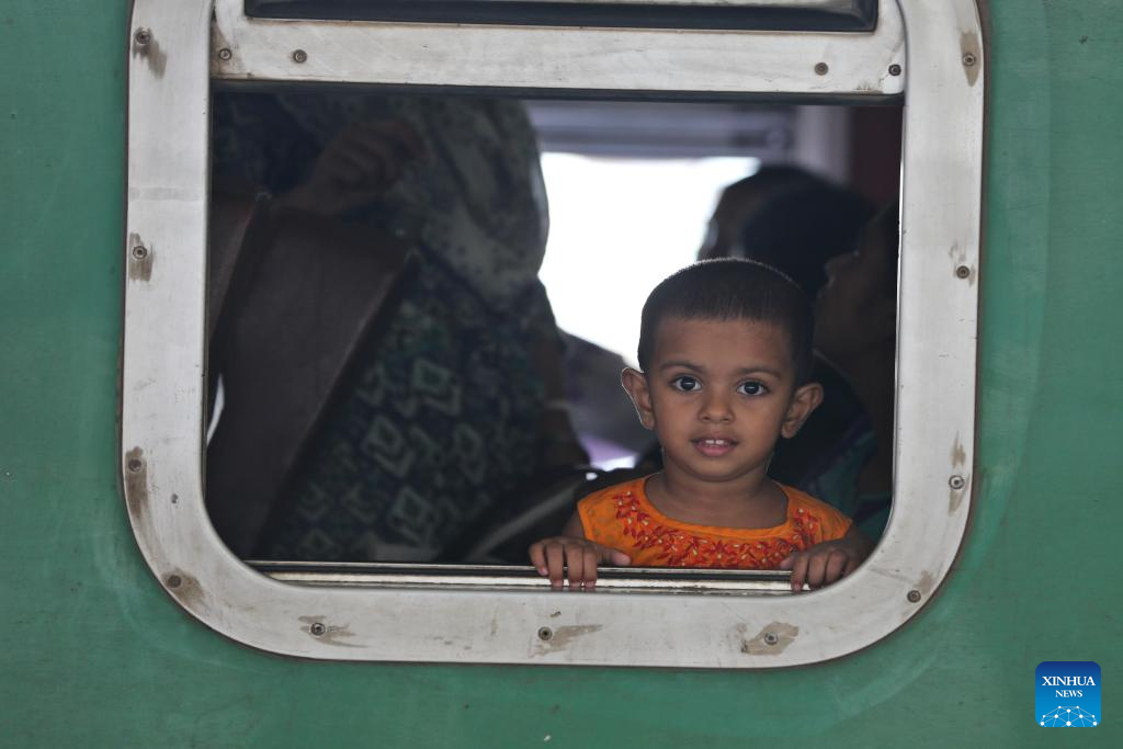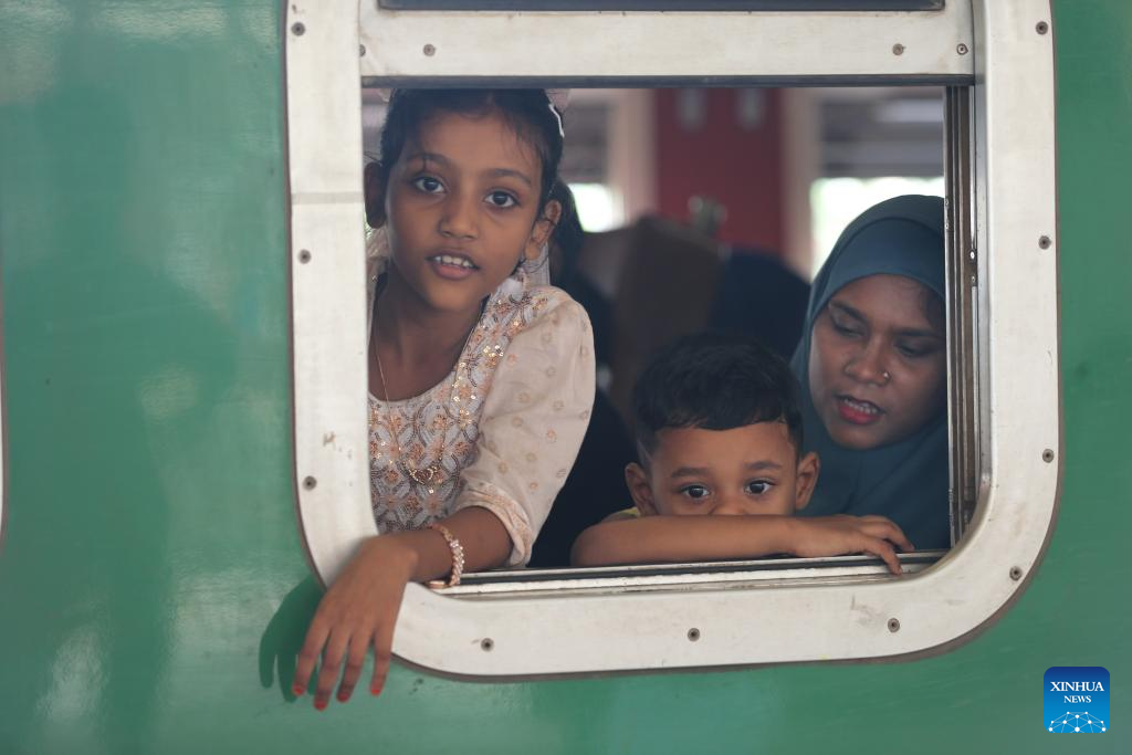 Children set off from a railway station in Dhaka, Bangladesh, May 31, 2025. As Eid al-Adha approaches, the capital has witnessed a surge of people returning home for the festival. (Photo by Habibur Rahman/Xinhua)