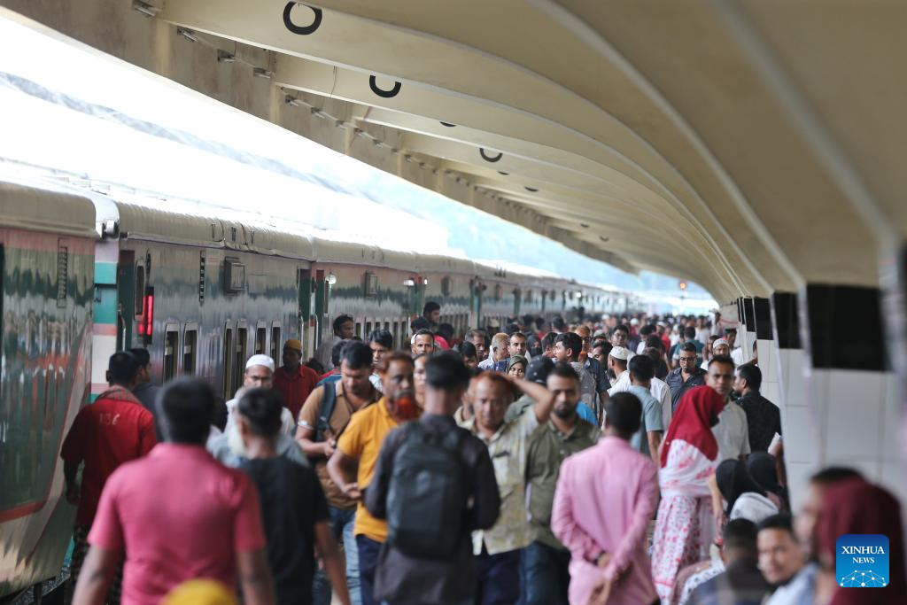 Passengers set off from a railway station in Dhaka, Bangladesh, May 31, 2025. As Eid al-Adha approaches, the capital has witnessed a surge of people returning home for the festival. (Photo by Habibur Rahman/Xinhua)
