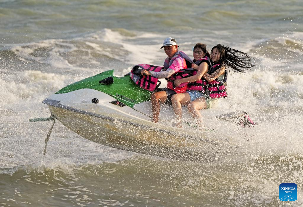 Tourists try jet skiing at the Silver Beach resort area in Beihai, south China's Guangxi Zhuang Autonomous Region, June 1, 2025. People enjoy the 3-day holiday of the Dragon Boat Festival, also called Duanwu Festival which falls on May 31 this year, via various activities across the country. (Photo by Long Tao/Xinhua)