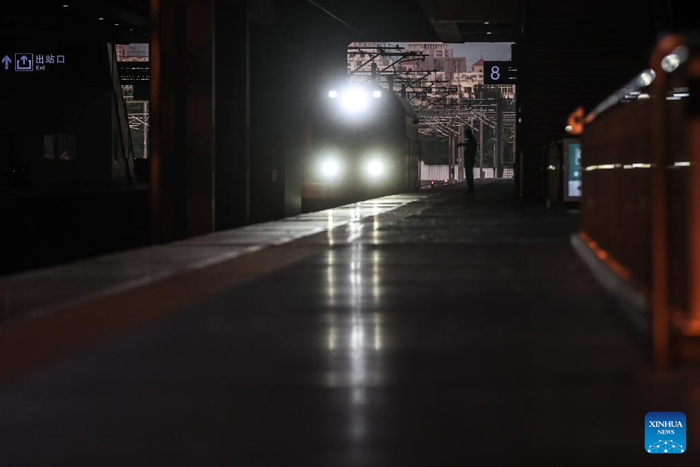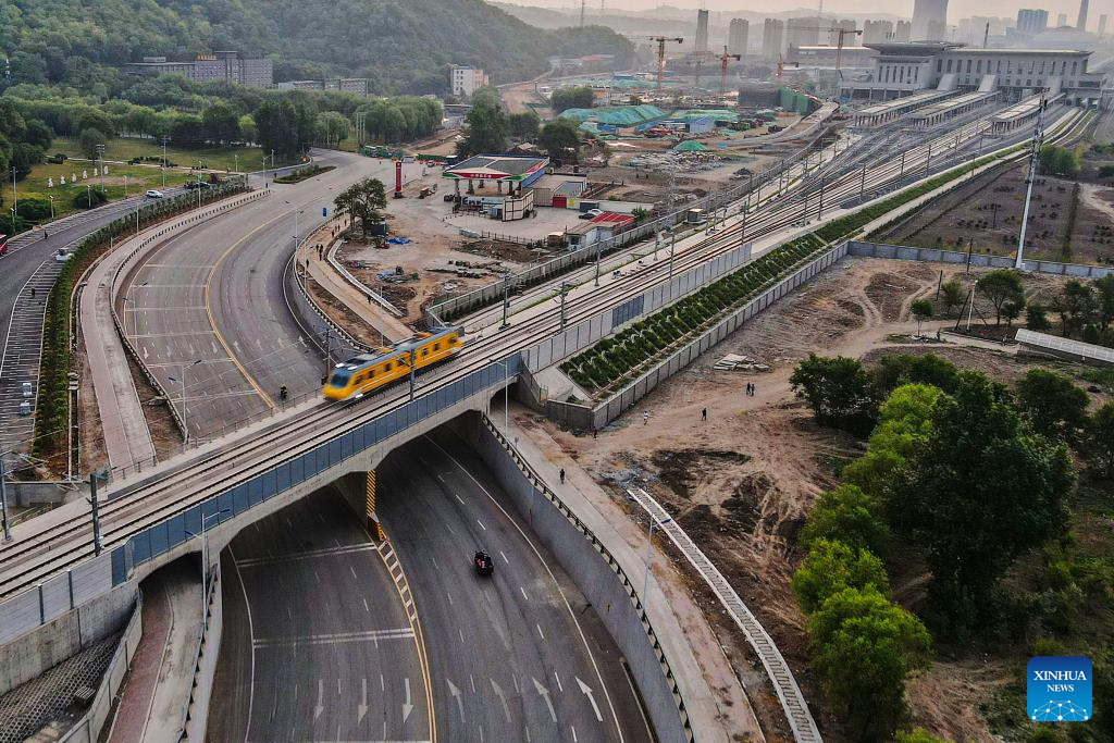 An inspection train departs from Shenyang North Railway Station during a joint debugging and testing on the high-speed railway connecting Shenyang, capital of northeast China's Liaoning Province, and Changbai Mountain reserve in the neighboring Jilin Province, June 1, 2025. With a length of 430 kilometers and design speed of 350 kilometers per hour, the high-speed railway will significantly improve regional connectivity and boost tourism and economic development upon operation. (Xinhua/Pan Yulong)