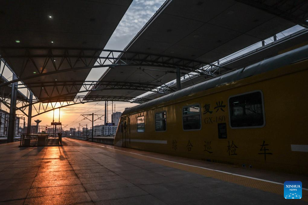An inspection train is set to depart from Shenyang North Railway Station during a joint debugging and testing on the high-speed railway connecting Shenyang, capital of northeast China's Liaoning Province, and Changbai Mountain reserve in the neighboring Jilin Province, June 1, 2025. With a length of 430 kilometers and design speed of 350 kilometers per hour, the high-speed railway will significantly improve regional connectivity and boost tourism and economic development upon operation. (Xinhua/Pan Yulong)