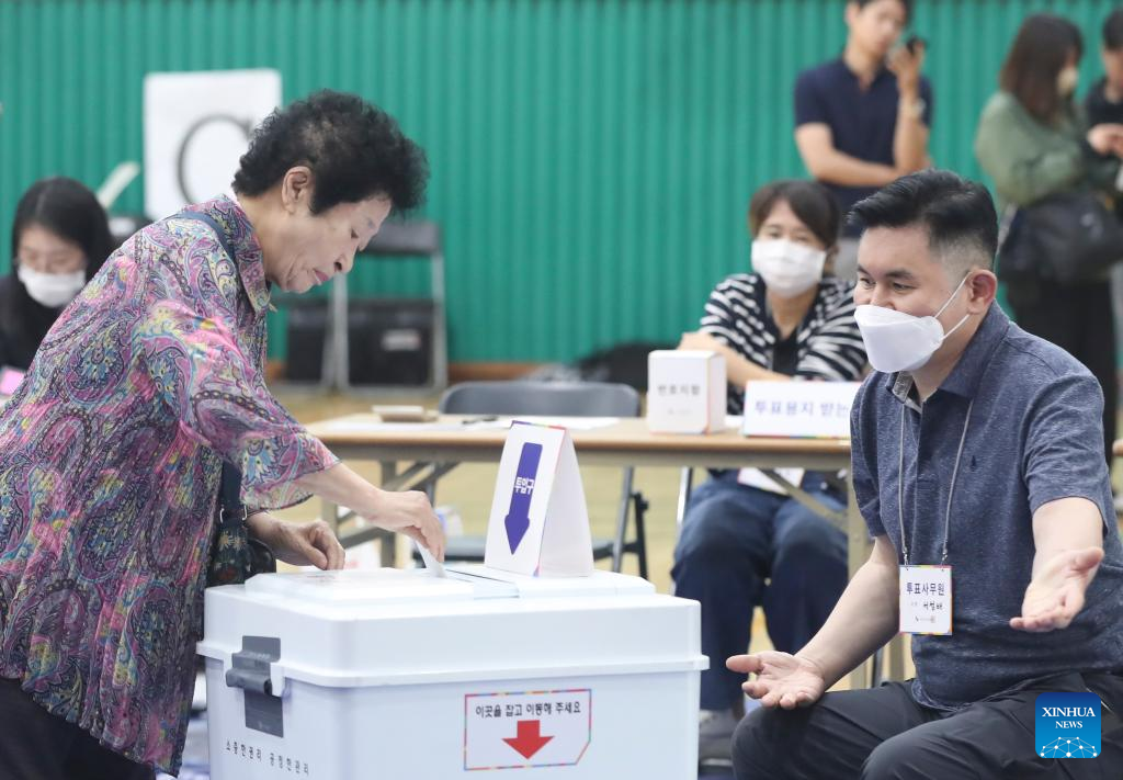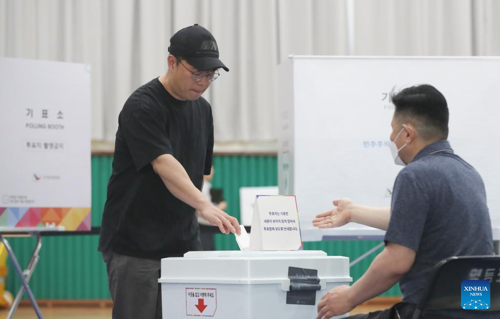 A voter casts his ballot at a polling station in Seoul, South Korea, June 3, 2025. (Xinhua/Yao Qilin)