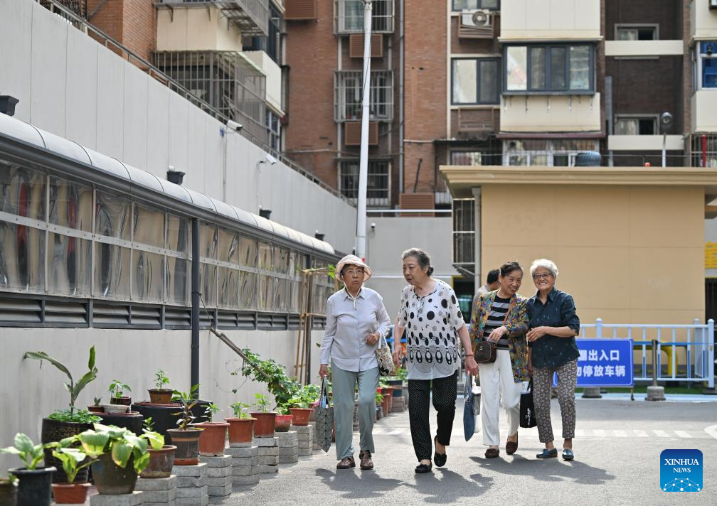Citizens are seen in a renovated block at Tianjin Tractor Factory area in north China's Tianjin on May 30, 2025. Tianjin has actively implemented a renewal and upgrading program for central urban areas in recent years. A total of 40 urban renewal areas have been planned by far, focusing on the renovation of old residential areas, the protection and utilization of industrial relics and the reuse of idle assets.