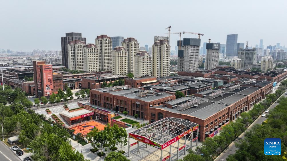 An aerial drone photo taken on May 29, 2025 shows the construction site of an urban renewal project at Nanmenwai Street business district in north China's Tianjin. (Xinhua/Sun Fanyue)