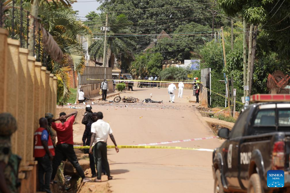 This photo taken on June 3, 2025 shows the scene of a bomb explosion that occurred earlier near a church in Munyonyo, a suburb of Kampala, Uganda. The Ugandan military on Tuesday said it had killed two suspected terrorists who were carrying an explosive device in the capital city. (Photo by Hajarah Nalwadda/Xinhua)