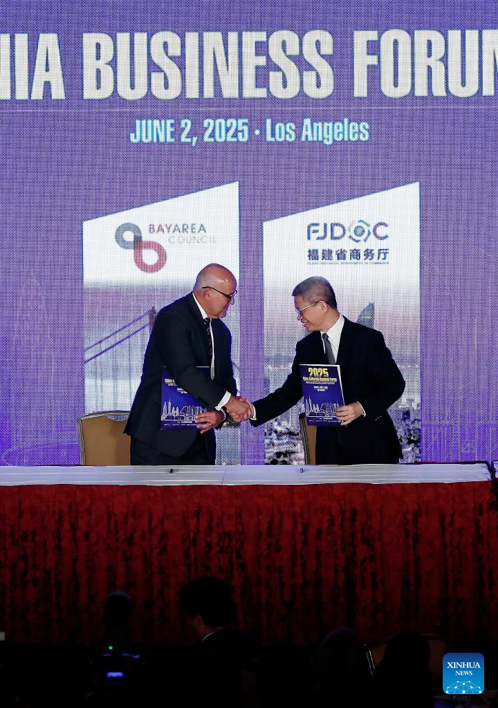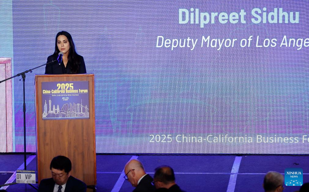 LOS ANGELES, June 2 (Xinhua) -- The 2025 China-California Business Forum was held on Monday, drawing nearly 500 entrepreneurs and officials from China and the U.S. state of California to promote deeper economic, trade and cultural exchanges.