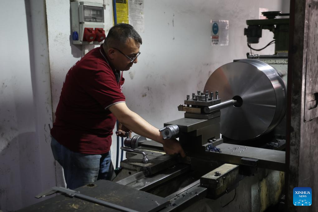 A man works at a small company in Ankara, Türkiye, on June 3, 2025. The Turkish government has unveiled a financial support scheme to stimulate lending to small and medium-sized enterprises (SMEs) struggling with rising costs. (Mustafa Kaya/Handout via Xinhua)