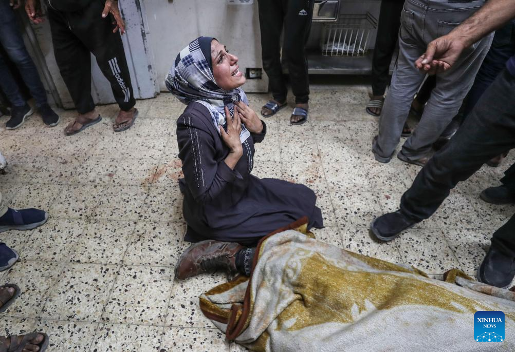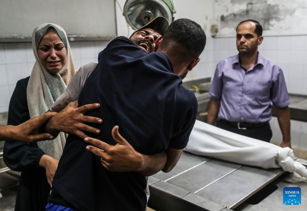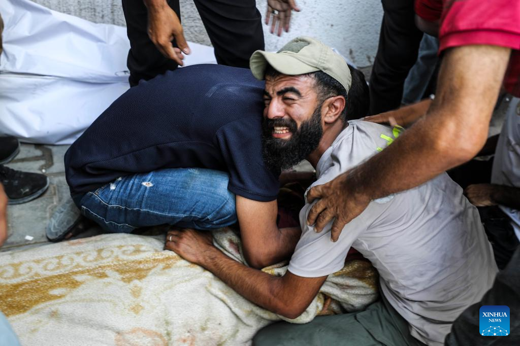 Palestinians mourn a victim killed in an Israeli airstrike, at a hospital in Gaza City, on June 3, 2025. (Photo by Mahmoud Zaki/Xinhua)