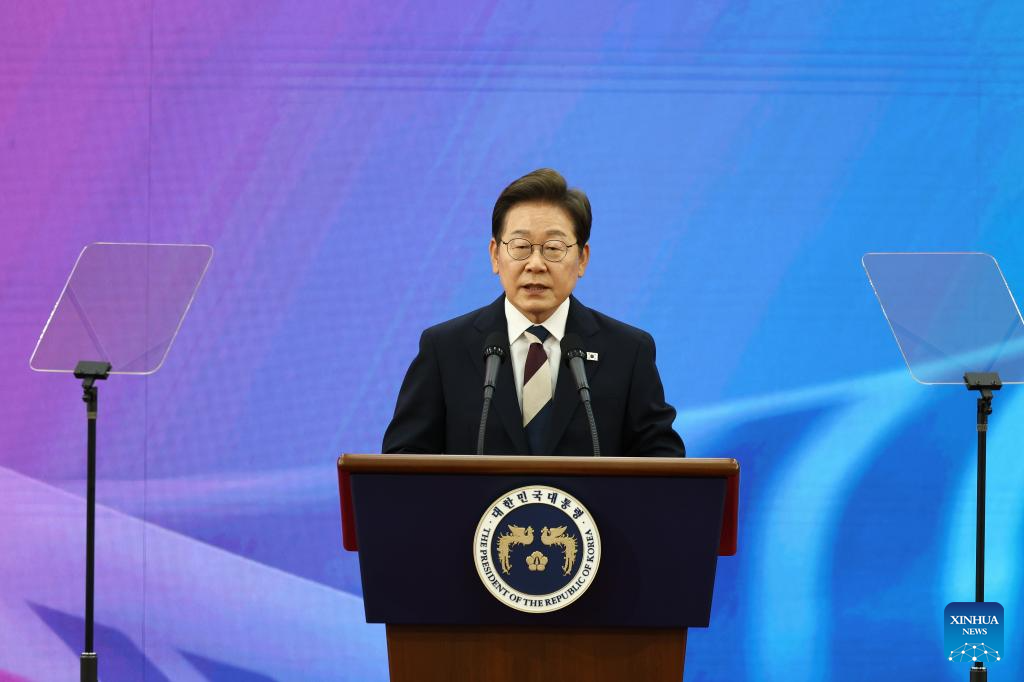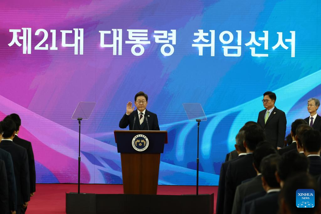 SEOUL, June 4 (Xinhua) -- Lee Jae-myung was sworn in as South Korea's new president on Wednesday after formally beginning his single five-year term earlier in the day.