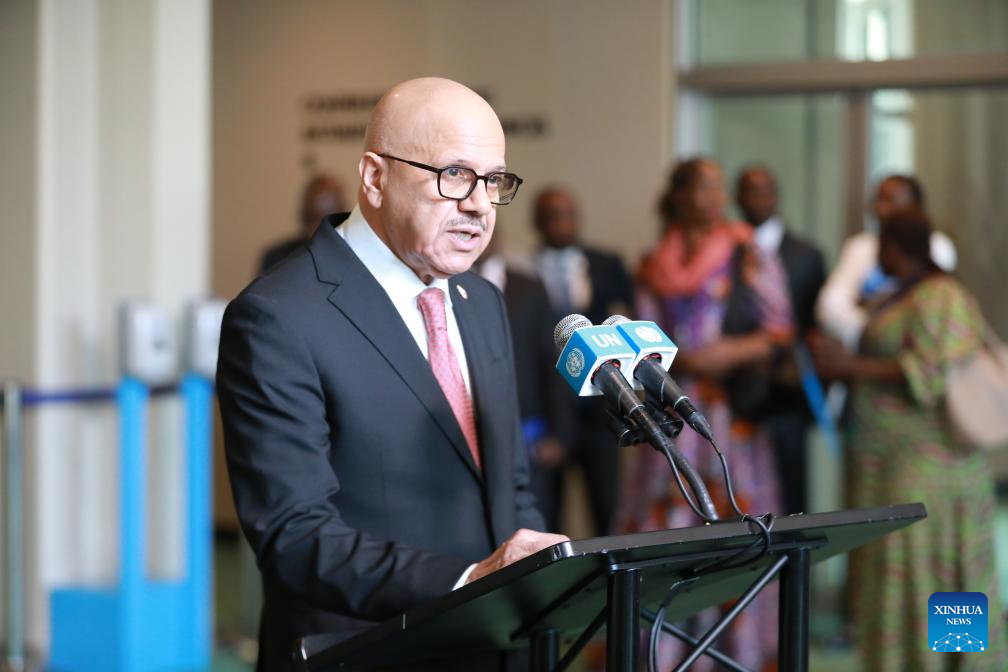 Liberian Deputy Minister of Foreign Affairs Deweh E. Gray speaks to the press after Liberia was elected as a non-permanent member of the UN Security Council at the UN headquarters in New York, on June 3, 2025. Bahrain, Colombia, the Democratic Republic of the Congo (DRC), Latvia and Liberia were elected non-permanent members of the UN Security Council on Tuesday for a two-year term running from Jan. 1, 2026 to Dec. 31, 2027. (Xinhua/Xie E)