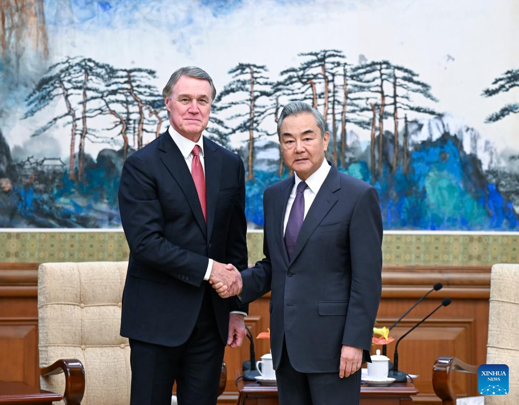 Chinese Foreign Minister Wang Yi, also a member of the Political Bureau of the Communist Party of China Central Committee, meets with new U.S. Ambassador to China David Perdue in Beijing, capital of China, June 3, 2025. (Xinhua/Zhang Ling)