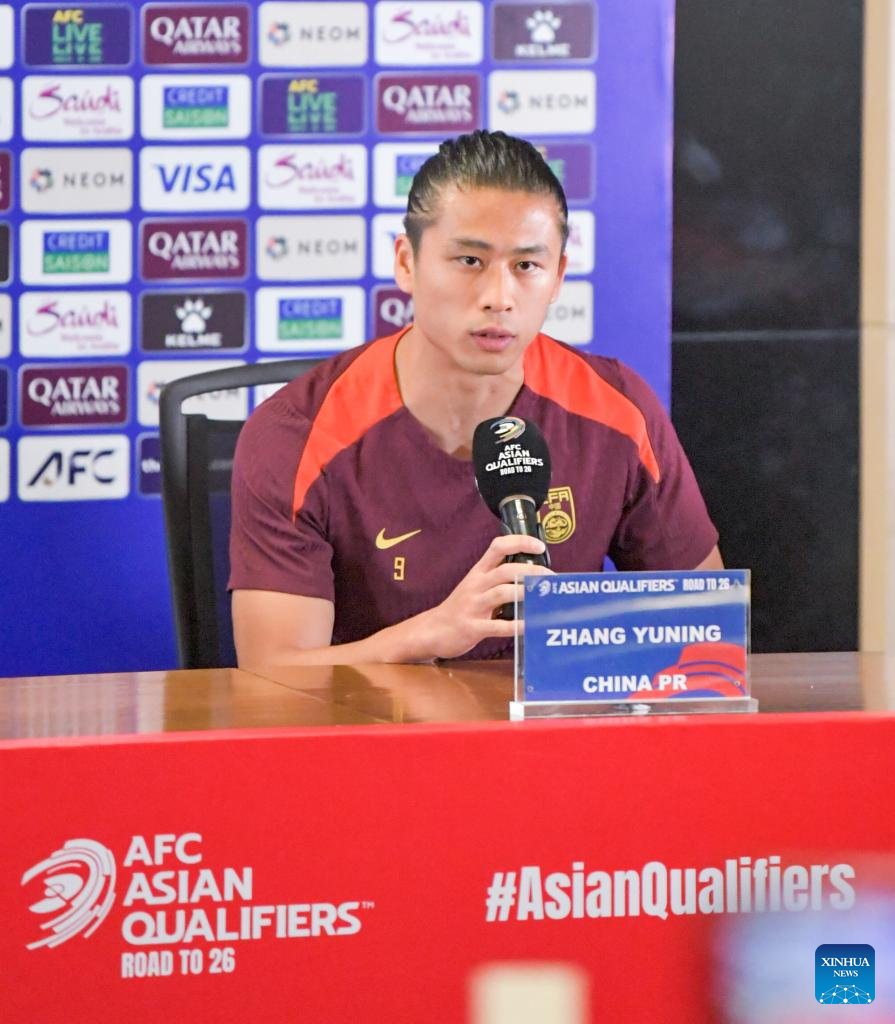 Player Zhang Yuning of China attends a press conference in Jakarta, Indonesia, June 4, 2025, one day ahead of the 2026 FIFA World Cup Asian Qualifiers Group C match between China and Indonesia. (Xinhua/Xu Qin)