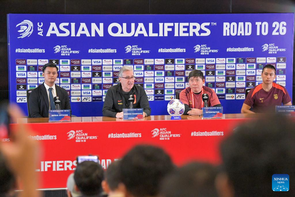 Head coach of China Branko Ivankovic (C) attends a press conference in Jakarta, Indonesia, June 4, 2025, one day ahead of the 2026 FIFA World Cup Asian Qualifiers Group C match between China and Indonesia. (Xinhua/Xu Qin)