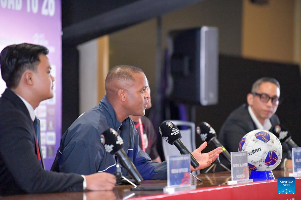 Indonesia's head coach Patrick Kluivert (C) speaks during a press conference in Jakarta, Indonesia, June 4, 2025, one day ahead of the 2026 FIFA World Cup Asian Qualifiers Group C match between China and Indonesia. (Xinhua/Xu Qin)