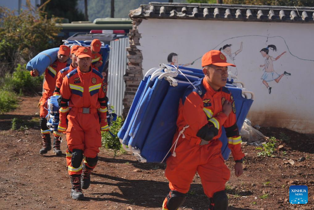 The quake was strongly felt in Eryuan County, Dali City and Heqing County, waking some residents. Local authorities in Eryuan County have promptly initiated an emergency response, with townships assessing the impact. (Photo by Luo Xincai/Xinhua)