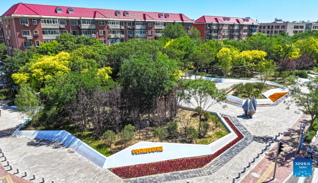 This drone photo shows a pocket park in Xiqing District of Tianjin, north China, June 3, 2025.